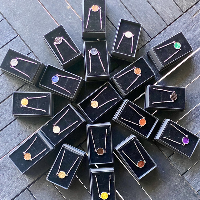 Bracelet en acier inoxydable, couleur, argent et son médaillon renfermant du cuir d’esturgeon teinté
