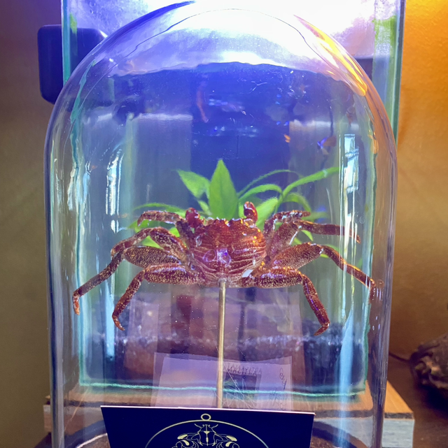 Globe en verre renfermant une mue de crabe